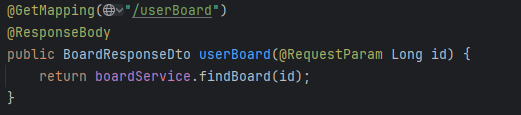 - 내용 추가: Get method에서는 RequestBody로 인자를 받는 것이 허용되지 않음.