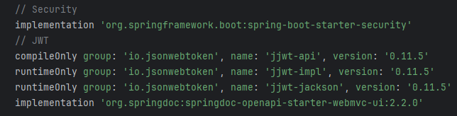 gradle에 의존성 추가할 때, 스프링 부트가 3.0 버전이상이라 아래와 같이 추가해주었습니다.