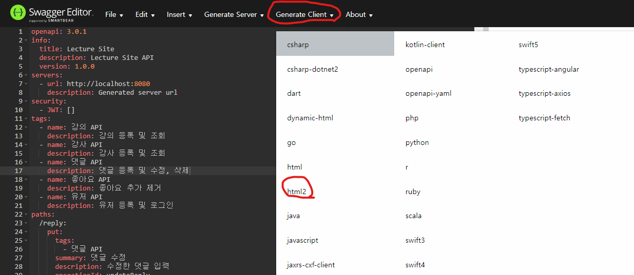 스웨거로 작업한 API를 html 문서로 저장하기