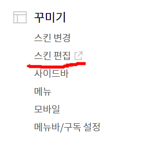 2. 블로그 관리 페이지에 들어가서 꾸미기 탭의 스킨편집 버튼을 누르기!